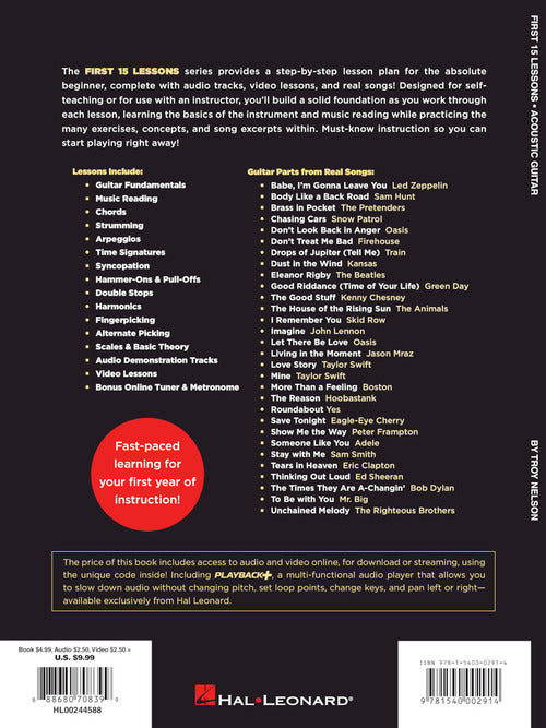 First 15 Lessons – Acoustic Guitar A Beginner's Guide, Featuring Step-By-Step Lessons with Audio, Video, and Popular Songs!