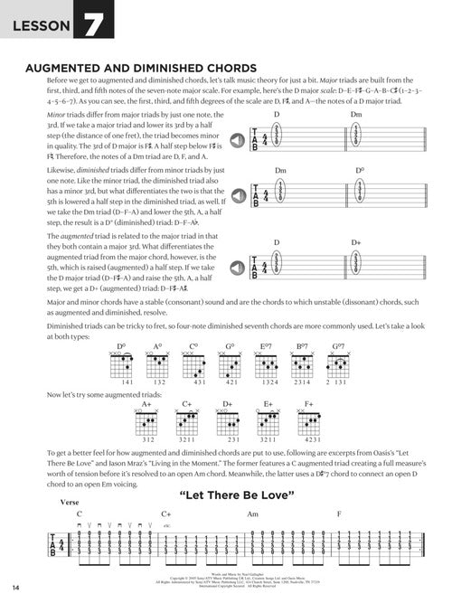 The acoustic guitar book, written in rhythm tab notation, features lessons on: guitar fundamentals, chords, strumming, arpeggios, time signatures, syncopation, hammer-ons & pull-offs, double stops, harmonics, fingerpicking, alternate picking, and scales & basic theory. Includes guitar parts from 31 songs: Body like a Back Road • Change the World • Dust in the Wind • Eleanor Rigby • Good Riddance (Time of Your Life) • The House of the Rising Sun • Imagine • Love Story • More Than a Feeling • The Reason • Someone like You • Thinking Out Loud • Unchained Melody • and more.