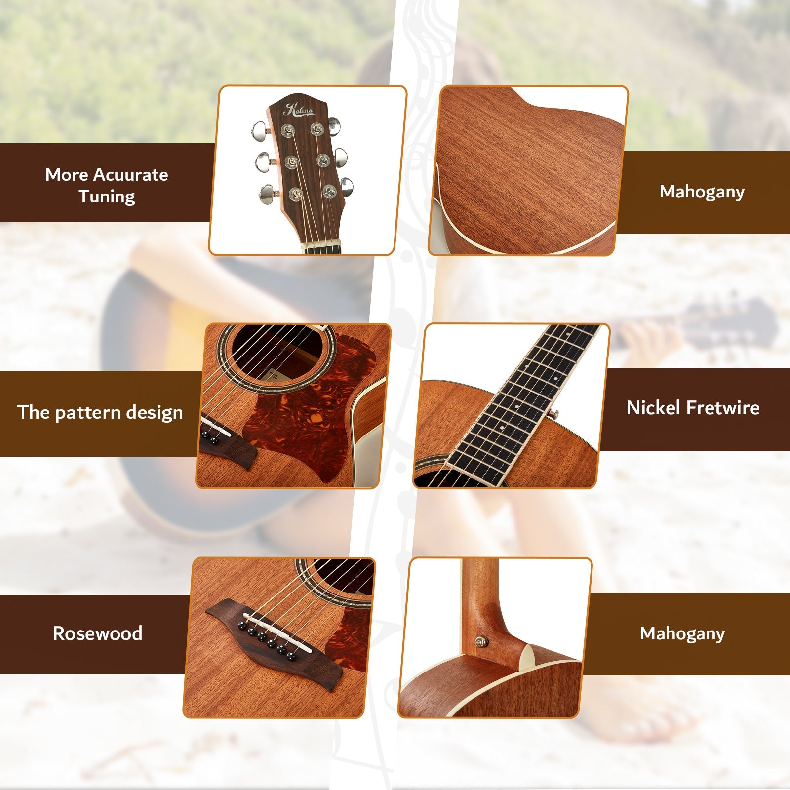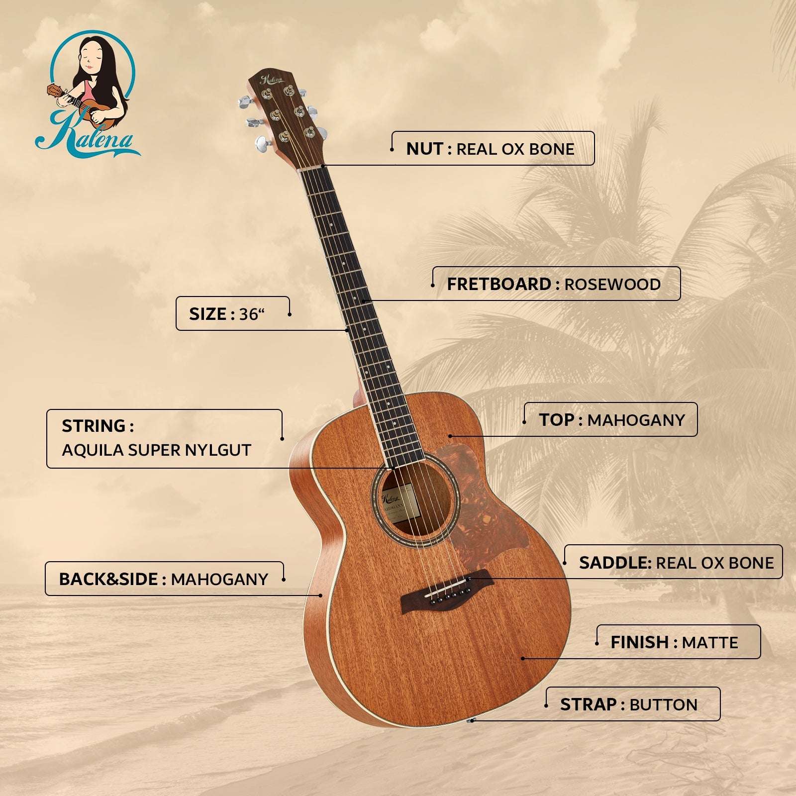 Kalena KM34 Mahogany 34 inch Baby Acoustic Guitar Complete Set