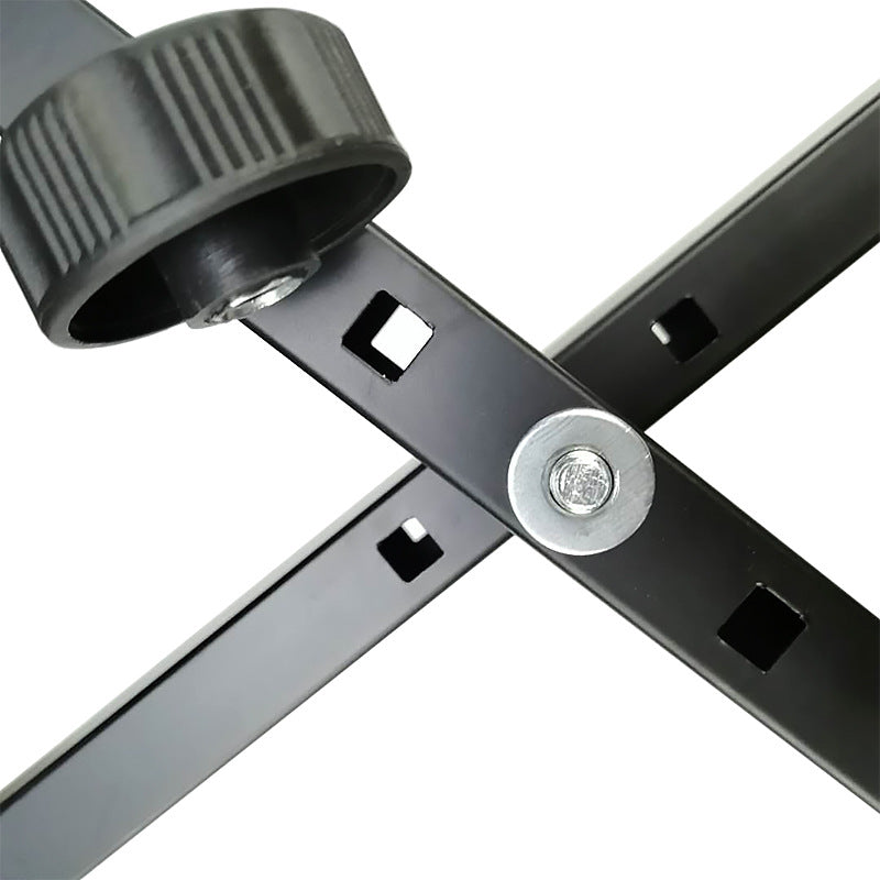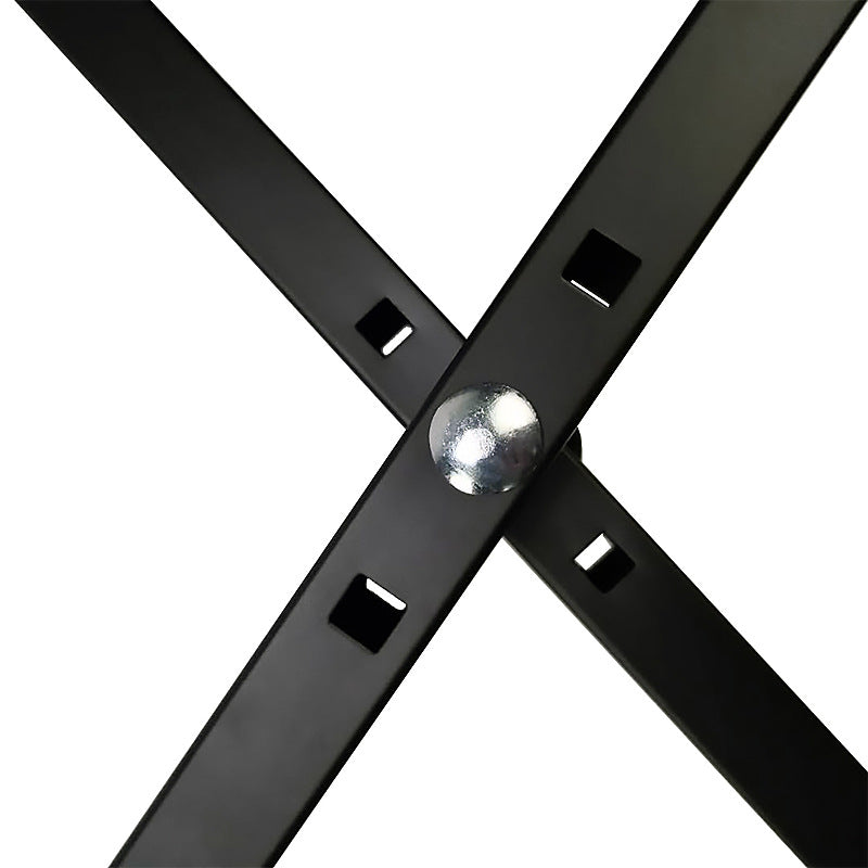 - Black x-style frame for stability and height adjustment. Made of heavy-duty steel providing extra strength and stability.
