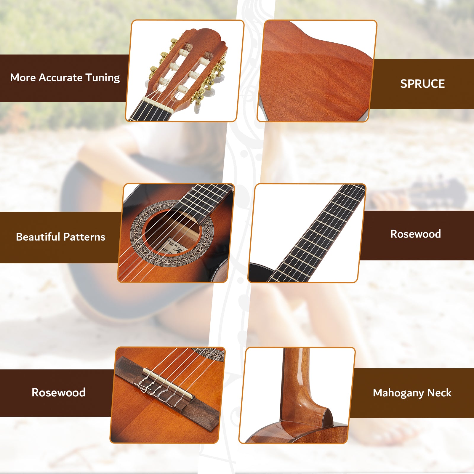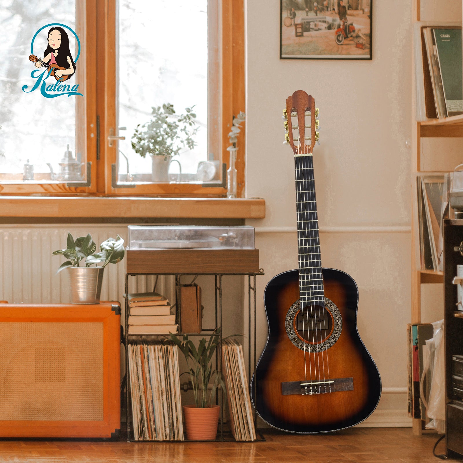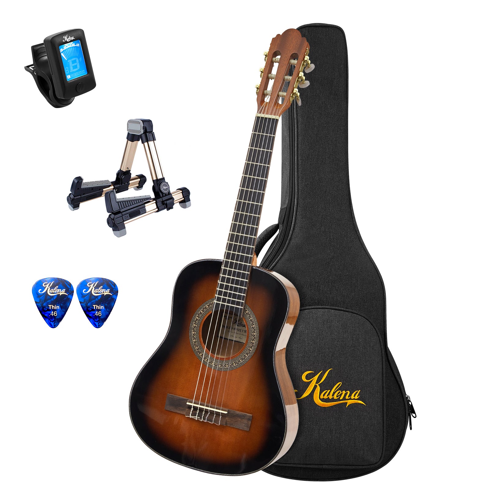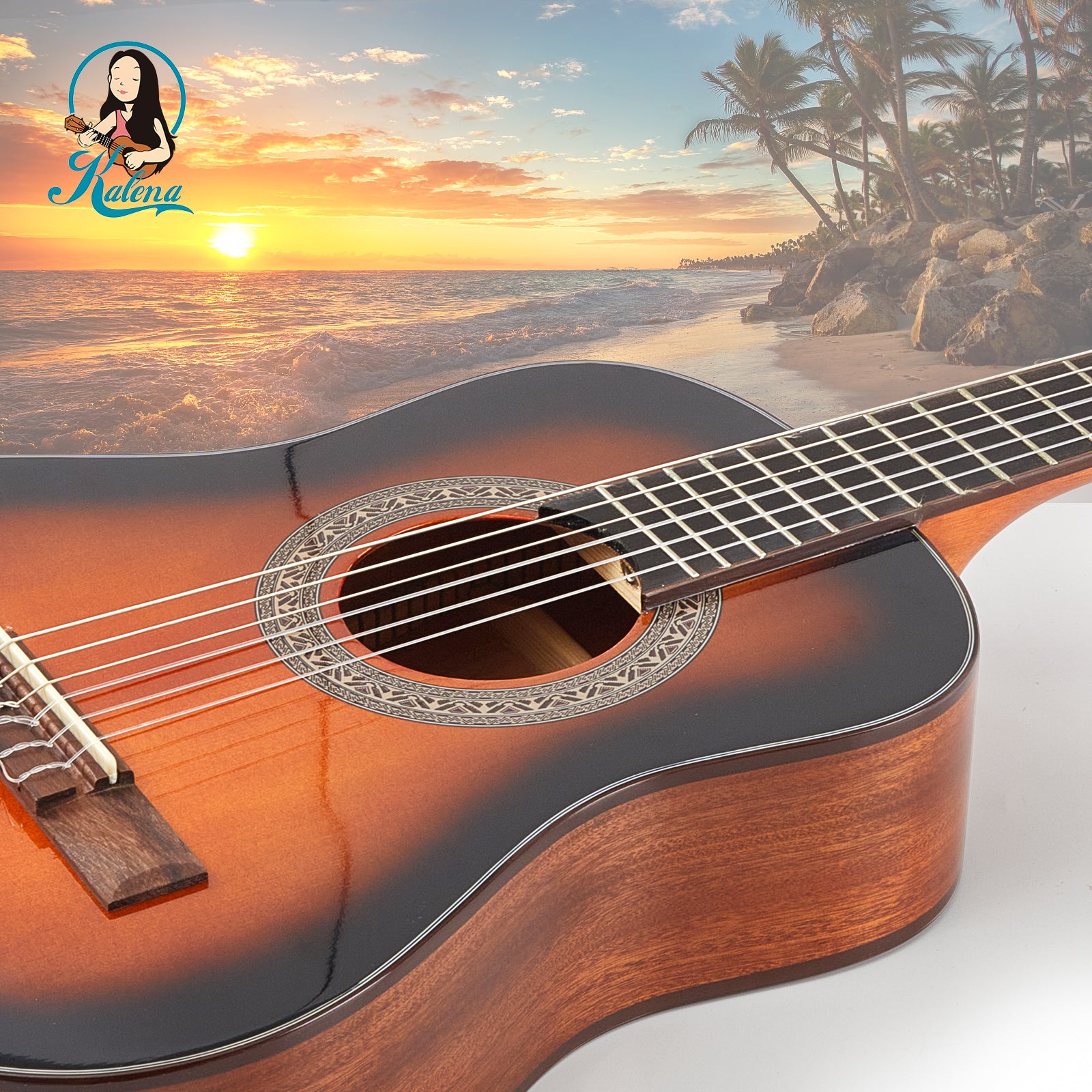 Kalena Sunburst T6 Solid mahogany Top Classical Guitar 36 inch Mini Complete Set