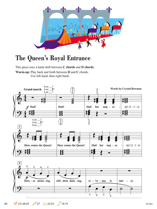 The 2nd Edition Level 2A Lesson Book follows Piano Adventures Level 1. The book opens with a Note Reading Guide and an introduction to eighth note rhythm patterns. Students work with 5-finger transposition, functional harmony, and musical phrases. Exploration of C, G, D and A major and minor 5-finger positions builds on intervallic reading skills that were introduced in the earlier level. Appealing repertoire reinforces key concepts and encourages students to explore musical expression through varied dynamics and tempos. Selections include well-known classics from the great composers and original compositions.