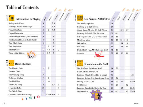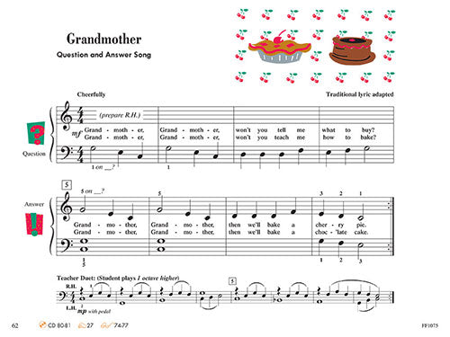 The 2nd Edition Primer Lesson Book introduces the keyboard, note values, and the grand staff. Students play in C 5-finger scale patterns, develop recognition of steps and skips, and learn letter names independent of finger number. Musicianship is built through the use of dynamics and coloristic experimentation with the pedal. The book is organized into units which represent the major concepts and skills. As new units are introduced, earlier concepts and skills are constantly reviewed.